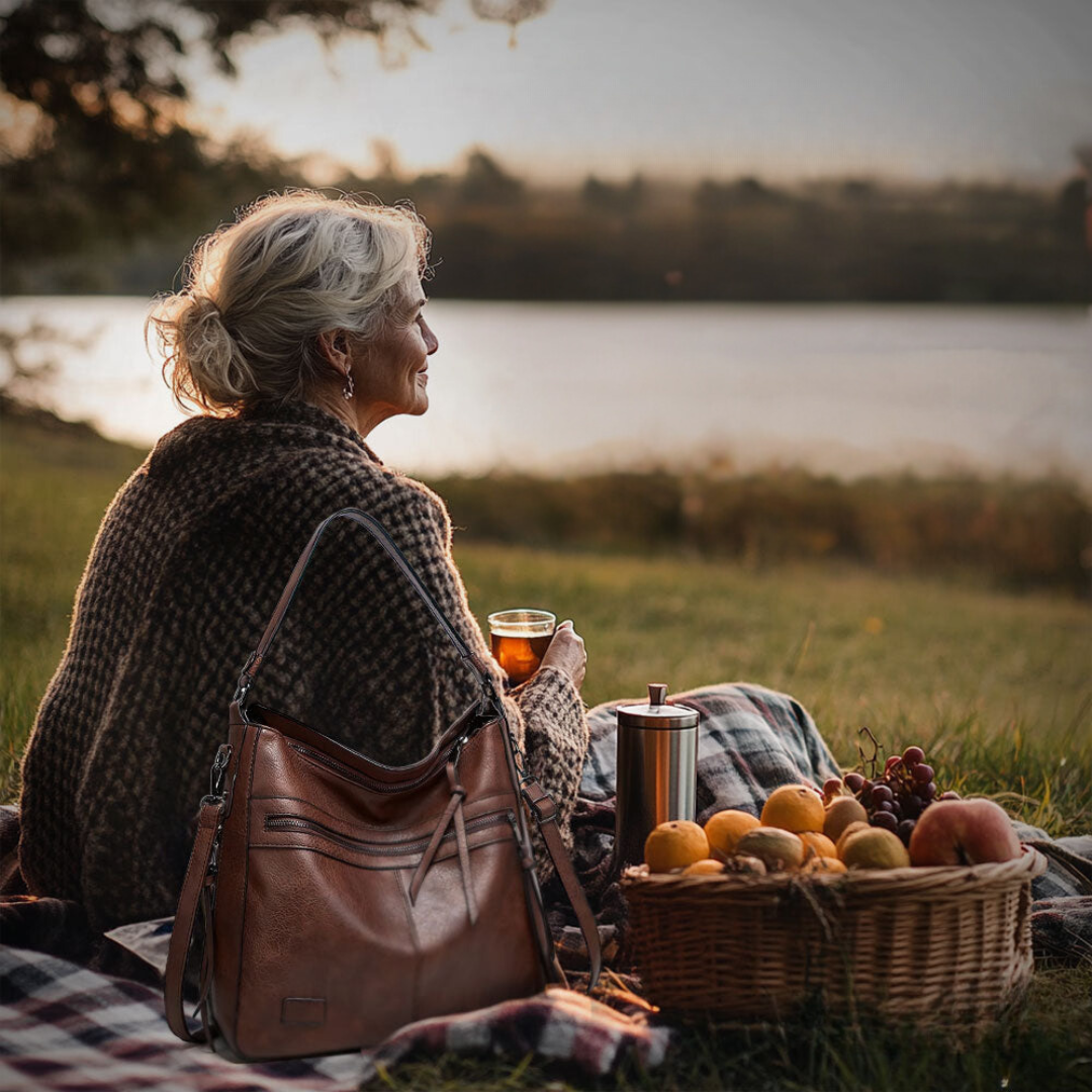 - Cuir Véritable Premium : Le Sac Auguste est fabriqué à partir de cuir véritable de haute qualité, garantissant un accessoire robuste et luxueux qui résiste à une utilisation quotidienne. Le cuir est résistant aux rayures, aux taches et à l'eau, maintenant son élégance au fil du temps.